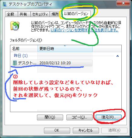 | vista フォルダの復元 |