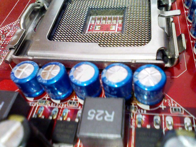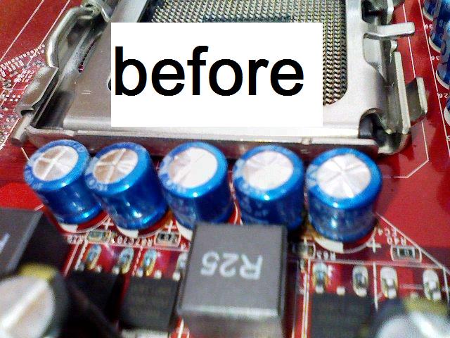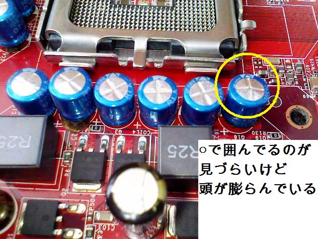 CPU周りのコンデンサが11個ちゅう8個が破裂していました。