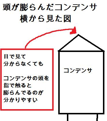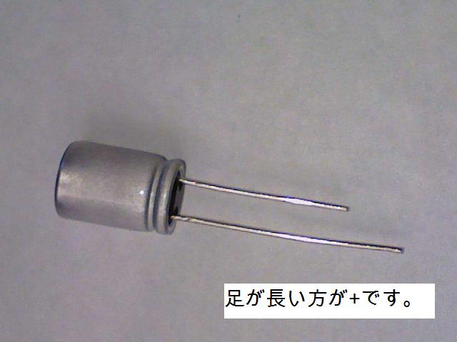 ↑交換用のコンデンサ、足の長いほうが+です。