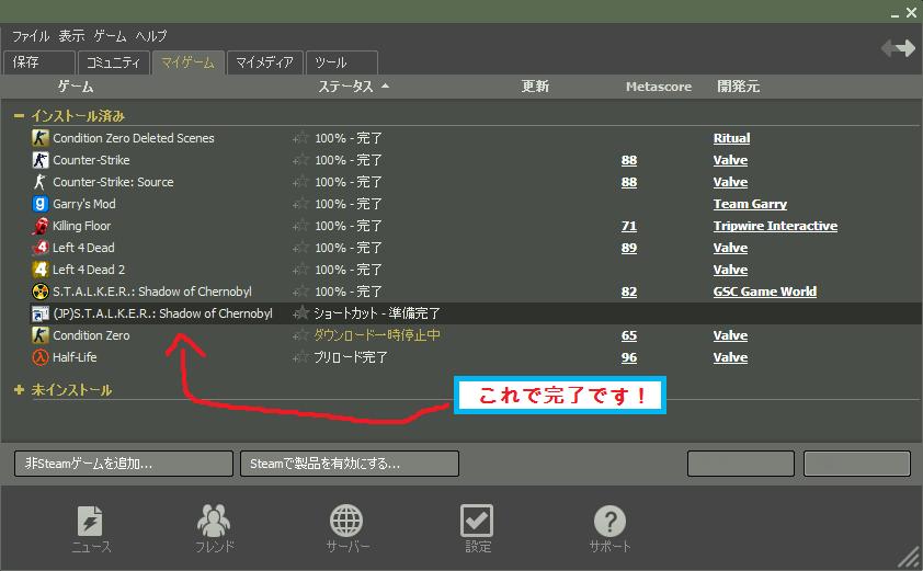 (画像では、(JP)S.T.A.L.K.E.R.: Shadow of Chernobylに書き直してます。)