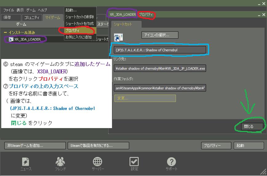 (画像は「S.T.A.L.K.E.R.: Shadow of Chernobyl」を選択しています。) - 右クリックして、プロパティを開く