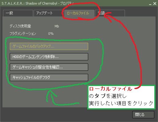 | キャッシュファイルのデフラグ | 選択したゲームのデフラグ |